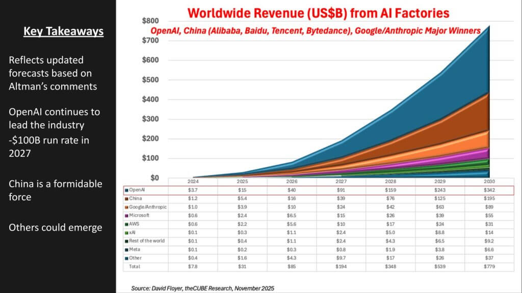 A short time after we published our first AI factories revenue outlook, OpenAI Group PBC Chief Executive Sam Altman and Microsoft Corp. CEO Satya Nadella introduced new data on the BG2 Pod. As well, on Nov. 4, The Information published projections from Anthropic in an article that also included financial projections on OpenAI based on multiple unnamed sources.
